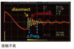 接觸檢查功能利用諧振頻率的差異來檢測是否有連接到待測物。由于當(dāng)沒有碰觸好或是沒有接到待測物做測試時,電容量會比有接待測物時還要小很多,所以波形諧振的頻率會變高,并可利用此頻率差異做檢測。使用者可依各自的需求對接觸檢查的靈敏度做調(diào)整,可將百分比的界線提高來增加接觸檢查的靈敏度或是將百分比的界線降低來減少接觸檢查的靈敏度。