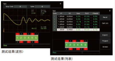 · Chroma 19311系列可透過內(nèi)部電感與電池芯的諧振波形來分析電池芯的絕緣品質(zhì)差異。檢測的判定功能共有8種:面積比較(Area)、面積差比較(Diff-Area)、顫動量偵測(Flutter)、二階微分偵測(Laplacian)、第一電壓峰值判定(V1)、第三電壓峰值判定(V3)、波峰比(Peak Ratio)及波峰差比(ΔPeak %)。