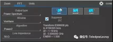 力科示波器都可以配備頻譜分析軟件選項(xiàng),提供了與專用頻譜分析儀非常相似的用戶界面,簡(jiǎn)化了FFT的設(shè)置,提高了測(cè)試的效率。